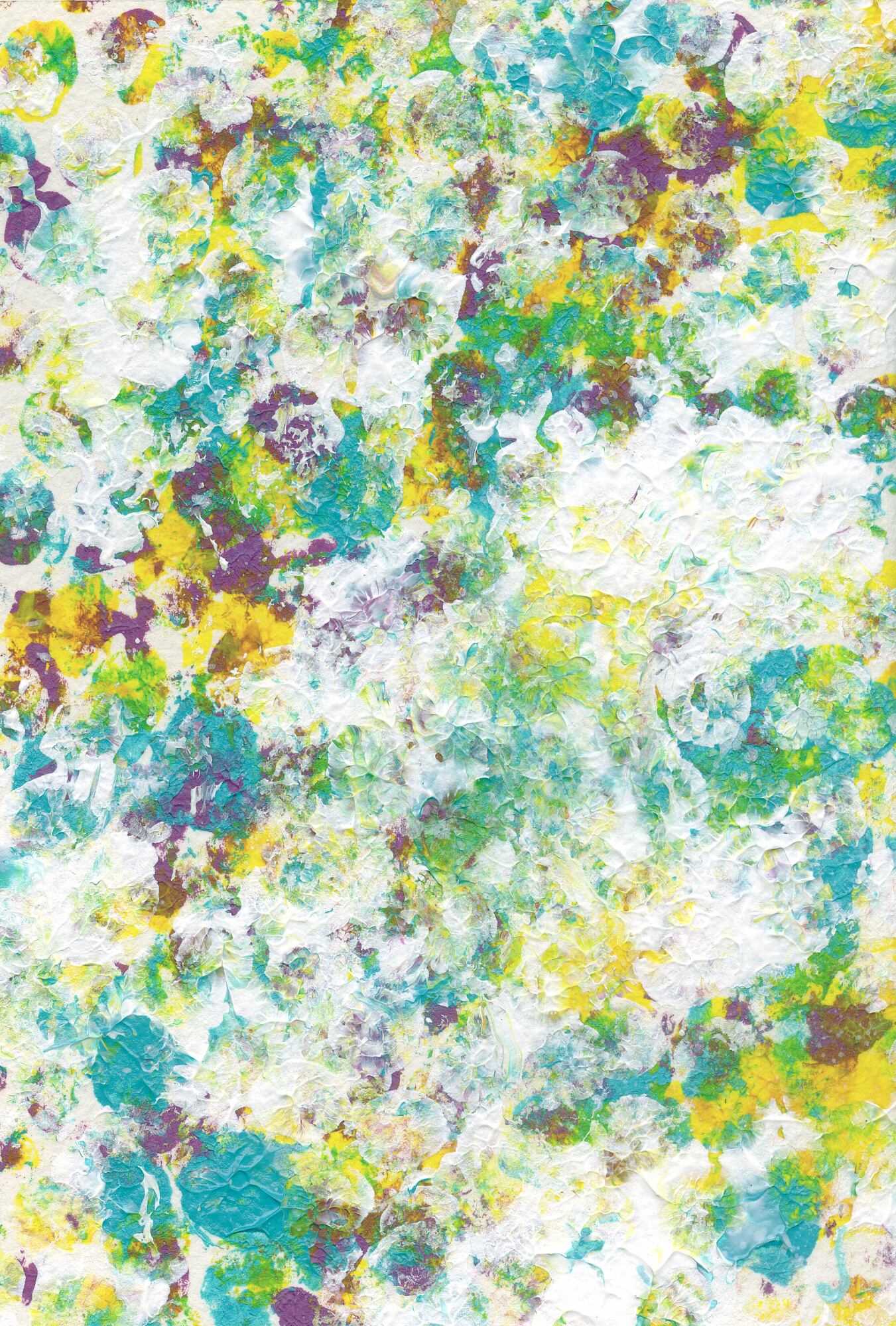 2023年 アクリル絵の具、紙 ハガキサイズ 額縁付き 音楽からイメージした抽象画です。