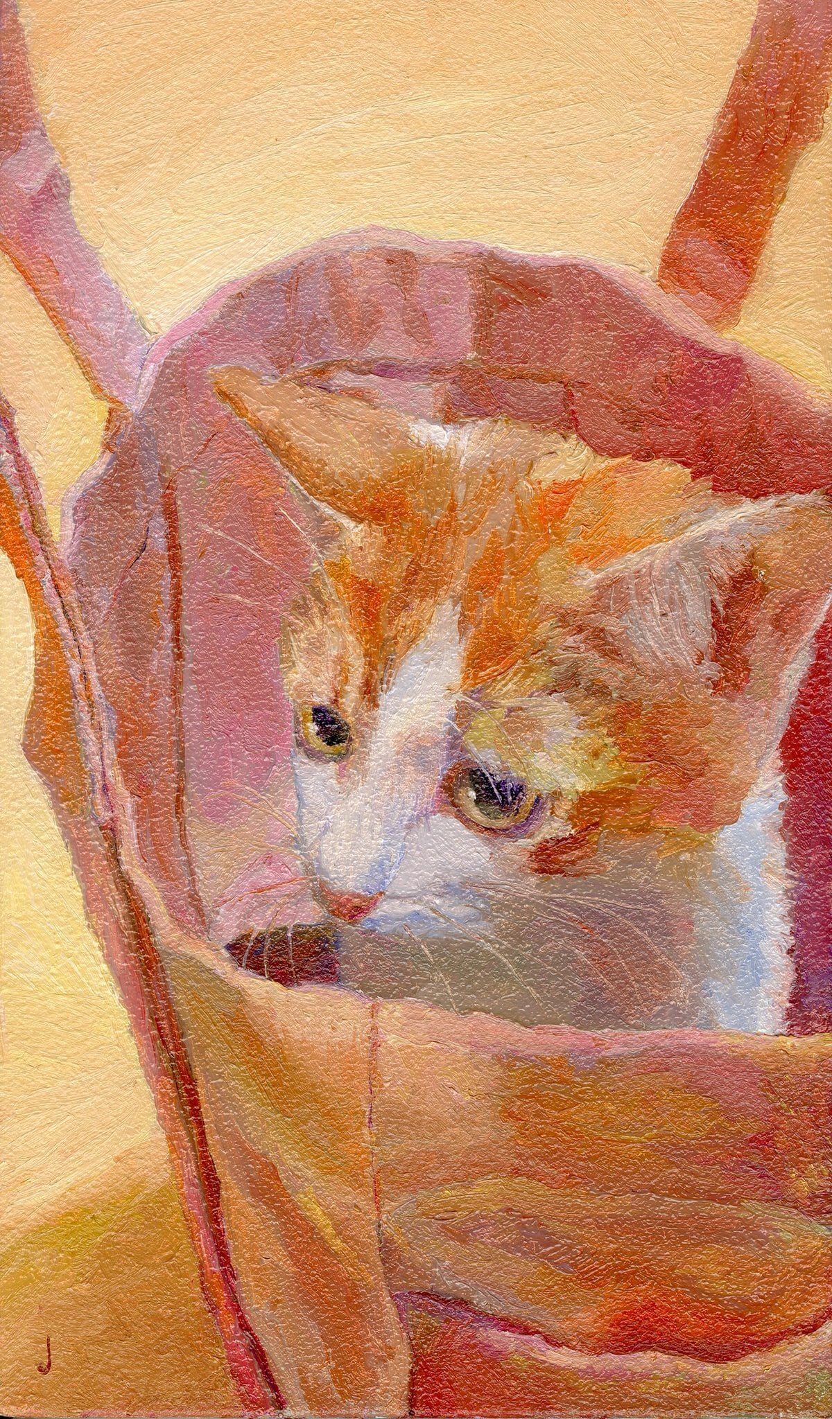ネコバッグ 2023年 油絵具、キャンバス M3(273×160mm) 額縁付きで発送致します。